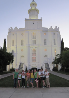 Where unfortunately one of my ribs popped out and my muscle spasmed on the second day. Don't let my smile fool you. I was in A LOT of pain in this pic. In fact, whatever the cause (the myriad of muscle relaxers and pain killers, my back, or just some stomach bug), I threw up during intermission at The Little Mermaid at Tuachan. Lovely, right? I was so dizzy that I had to cling to the Bishop's arm just to make it to the car without falling over. Luckily, Matt had arrived in St. George this very evening so that he could pick me up and take me to our next event....