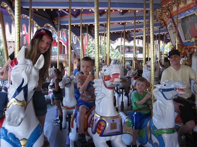 Went to Chuck E Cheese - a Sam and Zack favorite with their Gpa M. And yep. My mom rode the carousel with the boys!