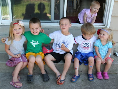 You're jealous of our clothes, I know. (And this pic needed a flash, but oh well!) Thanks Mom for sewing my oh so fashionable attire. :)